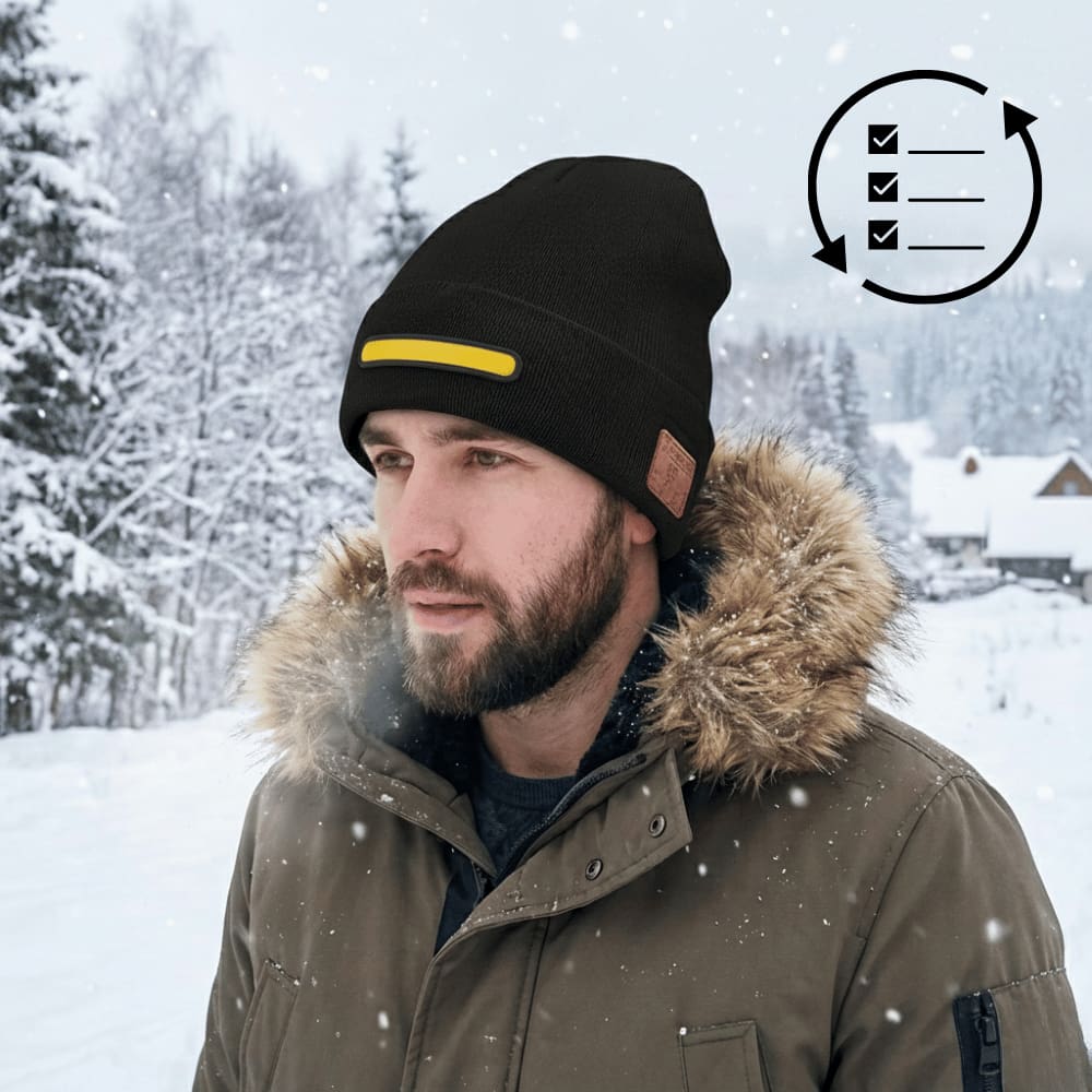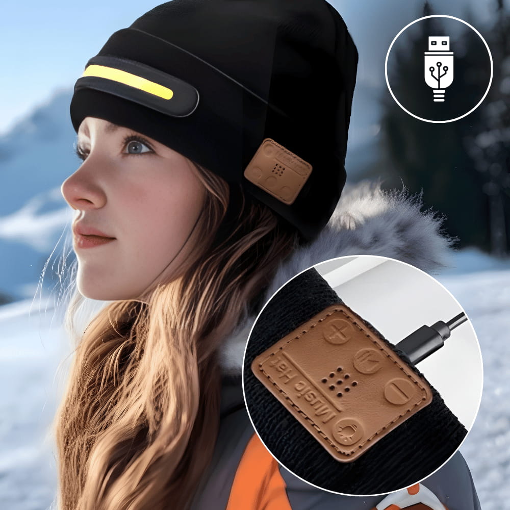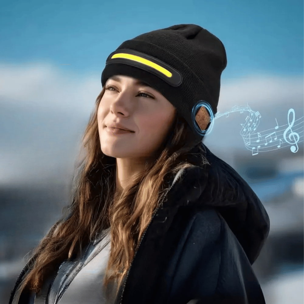 Erlebe die perfekte Kombination aus Licht, Wärme und freihändigem Audio mit der BeamTune Mütze.