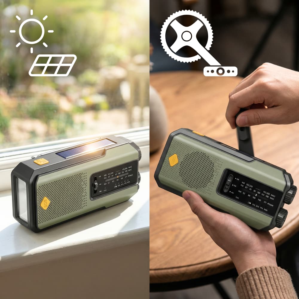 Das Kompakt-Notfallradio mit Solar, Kurbel & SOS-Funktion von NaturVibes wurde für Situationen entwickelt, in denen eine unabhängige Stromversorgung und verlässliche Informationsquellen entscheidend sind.