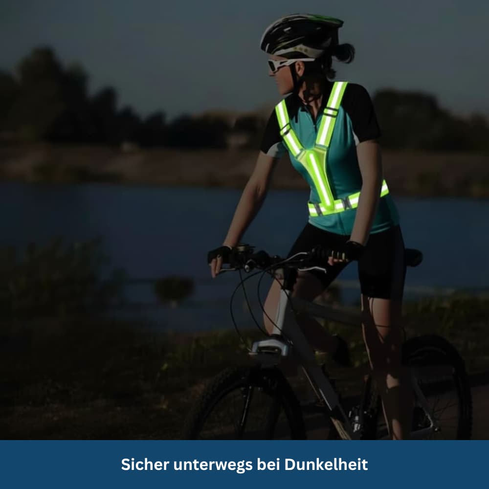 Sie sorgt dafür, dass du auch bei Dunkelheit oder schlechter Sicht zuverlässig wahrgenommen wirst beim Laufen, Radfahren oder Spazierengehen.