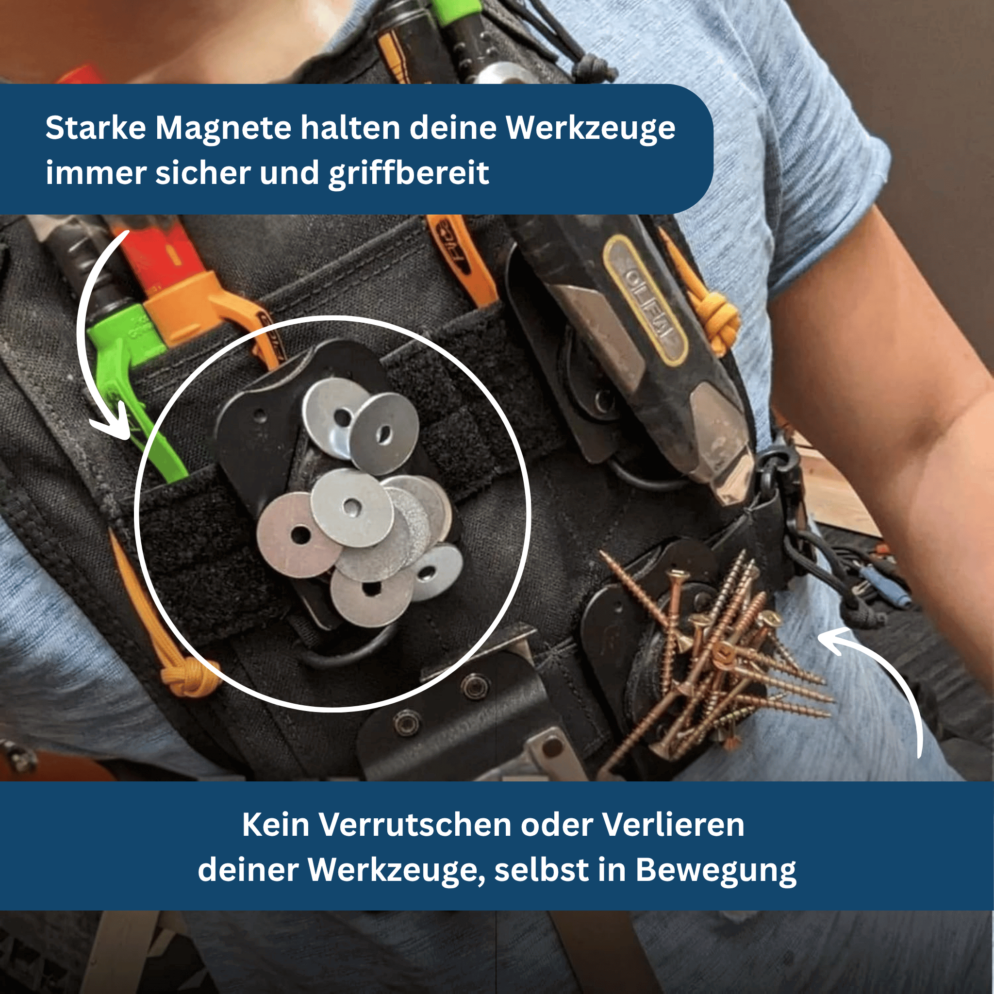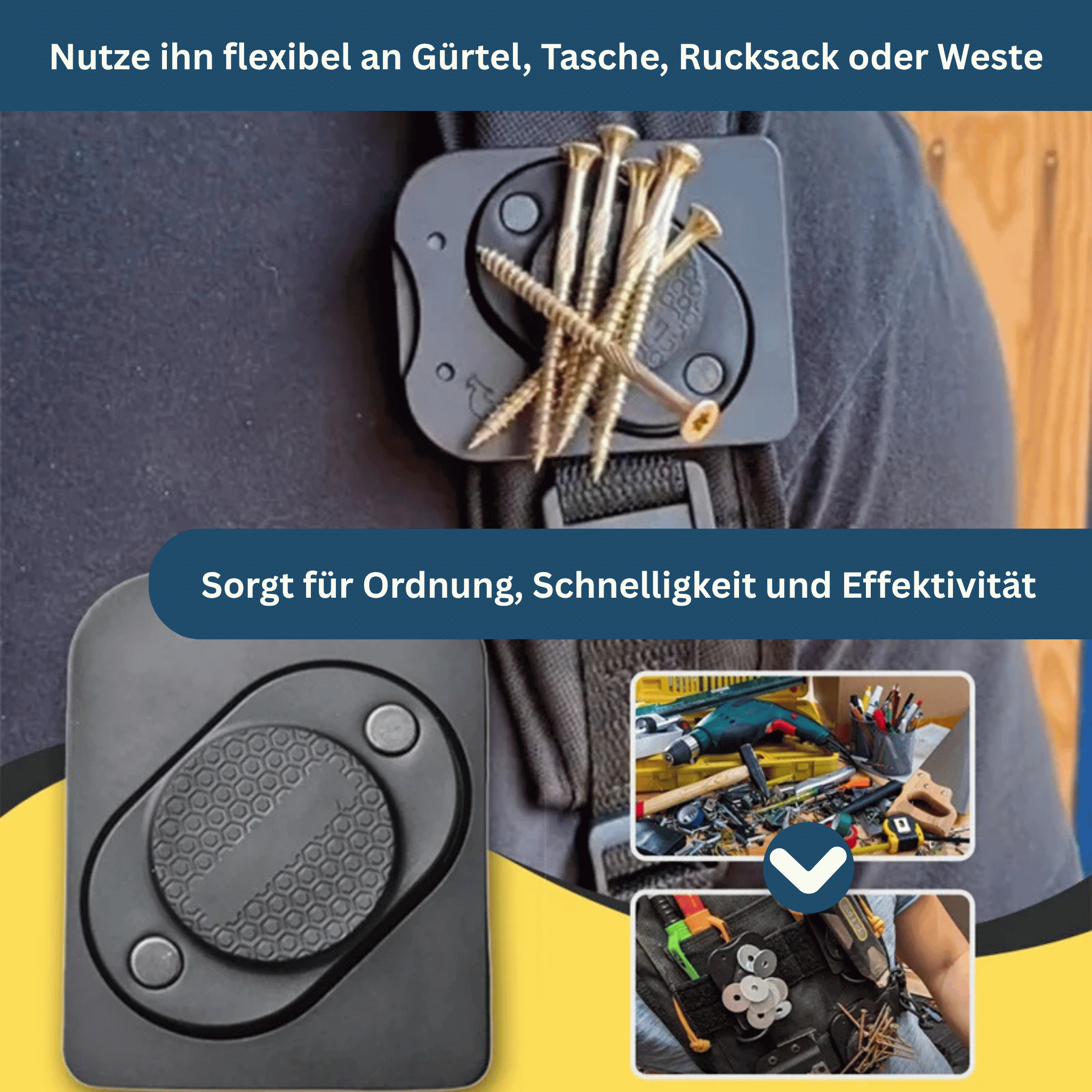Egal, ob du Rechts- oder Linkshänder bist, der Werkzeughalter lässt sich flexibel an Gürtel, Hosentaschen, Rucksack oder Weste befestigen und begleitet dich bei Handwerk, Hobby und professionellen Arbeiten.