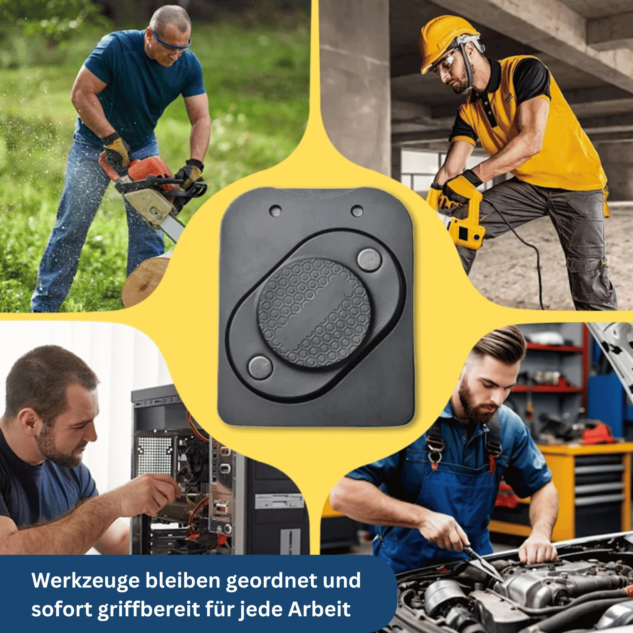 Der Werkzeughalter verfügt über besonders starke Magnete, die Werkzeuge wie Schraubendreher, Zangen, Nägel oder sogar Hämmer sicher an ihrem Platz halten.