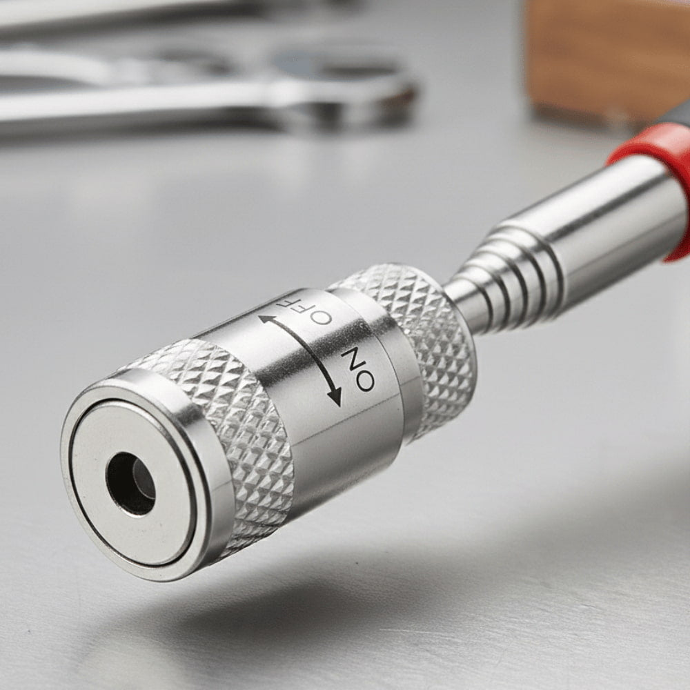 Du kannst es verwenden, um kleine Metallteile wie Schrauben, Nägel oder Muttern in engen, dunklen oder schwer zugänglichen Bereichen aufzuheben – ideal für Werkstatt, Haushalt oder Auto.