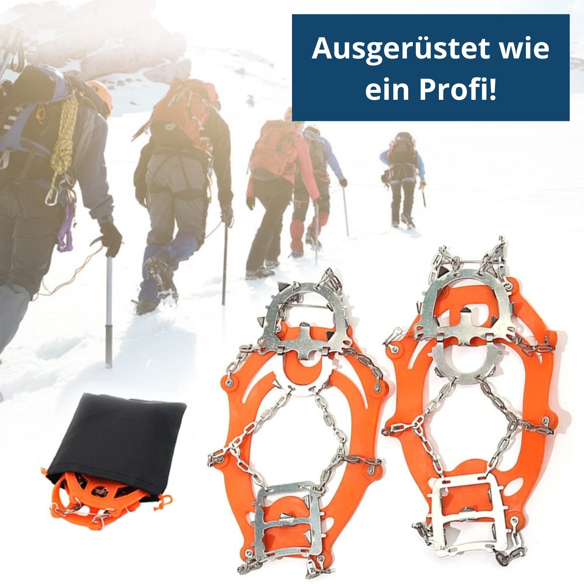 Durch die flexiblen und elastischen Materialien aus TPE-Gummi und dem rostfreiem Premium Mangal-Stahl sind die Grödel kompakter als ein Geldbeutel!