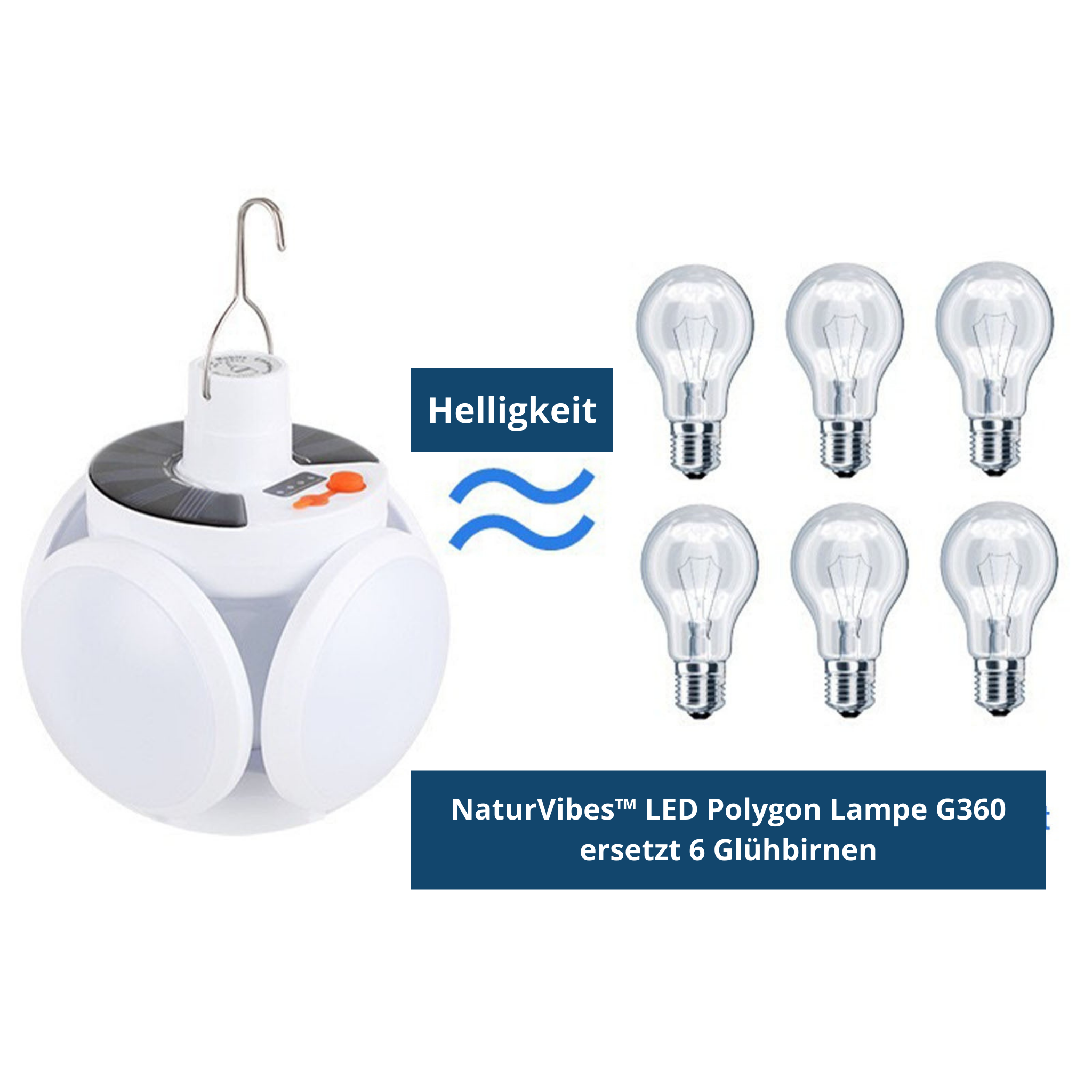 Mit unserer NaturVibes LED Polygon Lampe G360 hast du eine ultra helle und autarke Lichtquelle!
