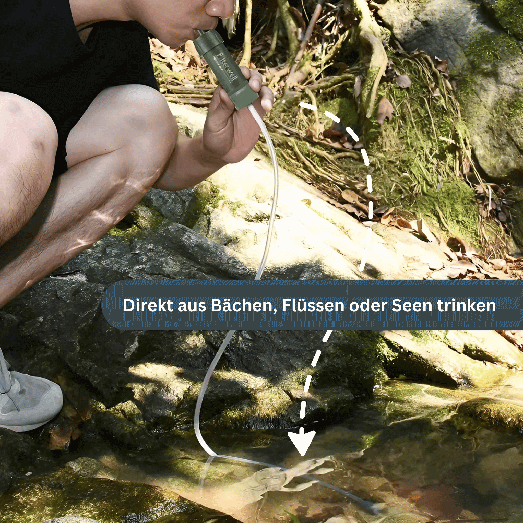 Ja, du kannst direkt aus der Wasserquelle trinken oder ein DIY-Filtersystem mit Flaschen, Beuteln oder Eimern aufbauen – so passt sich der Filter flexibel deinen Bedürfnissen an.