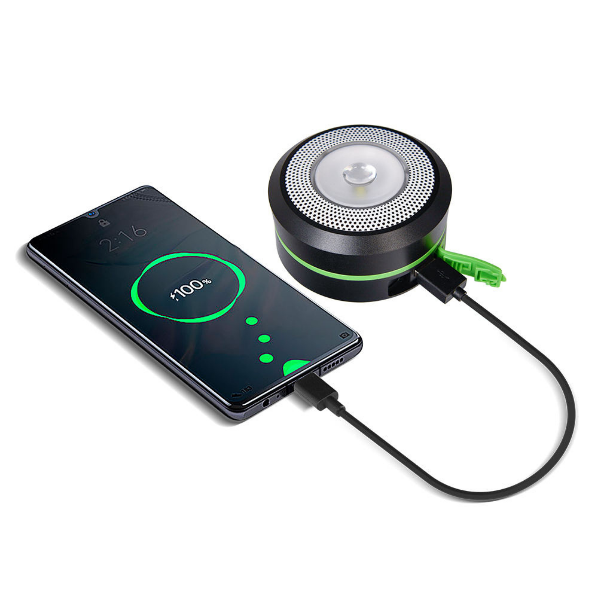 Ob tagsüber per Sonnenkraft oder bei Bedarf über USB: Mit dem 800mAh-Akku bietet die Laterne bis zu 10 Stunden Licht im Energiesparmodus.