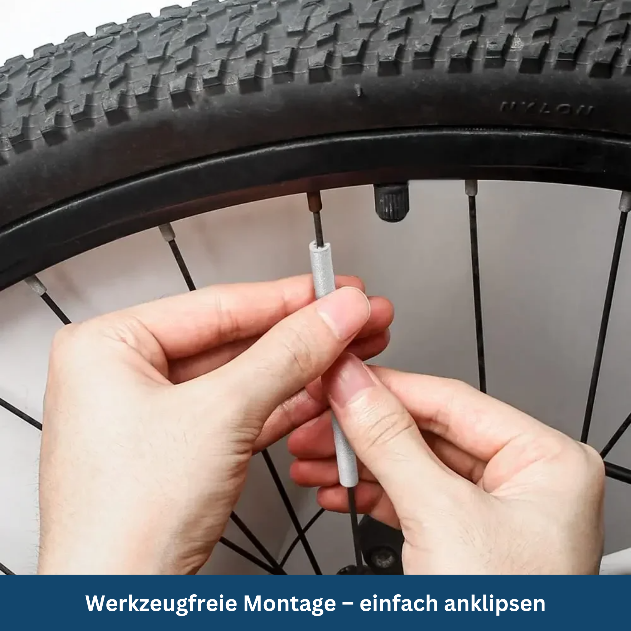 Die Reflektoren passen sich dank der flexiblen Bauweise an verschiedene Speichenstärken an und lassen sich mühelos anbringen – ganz ohne Werkzeug.