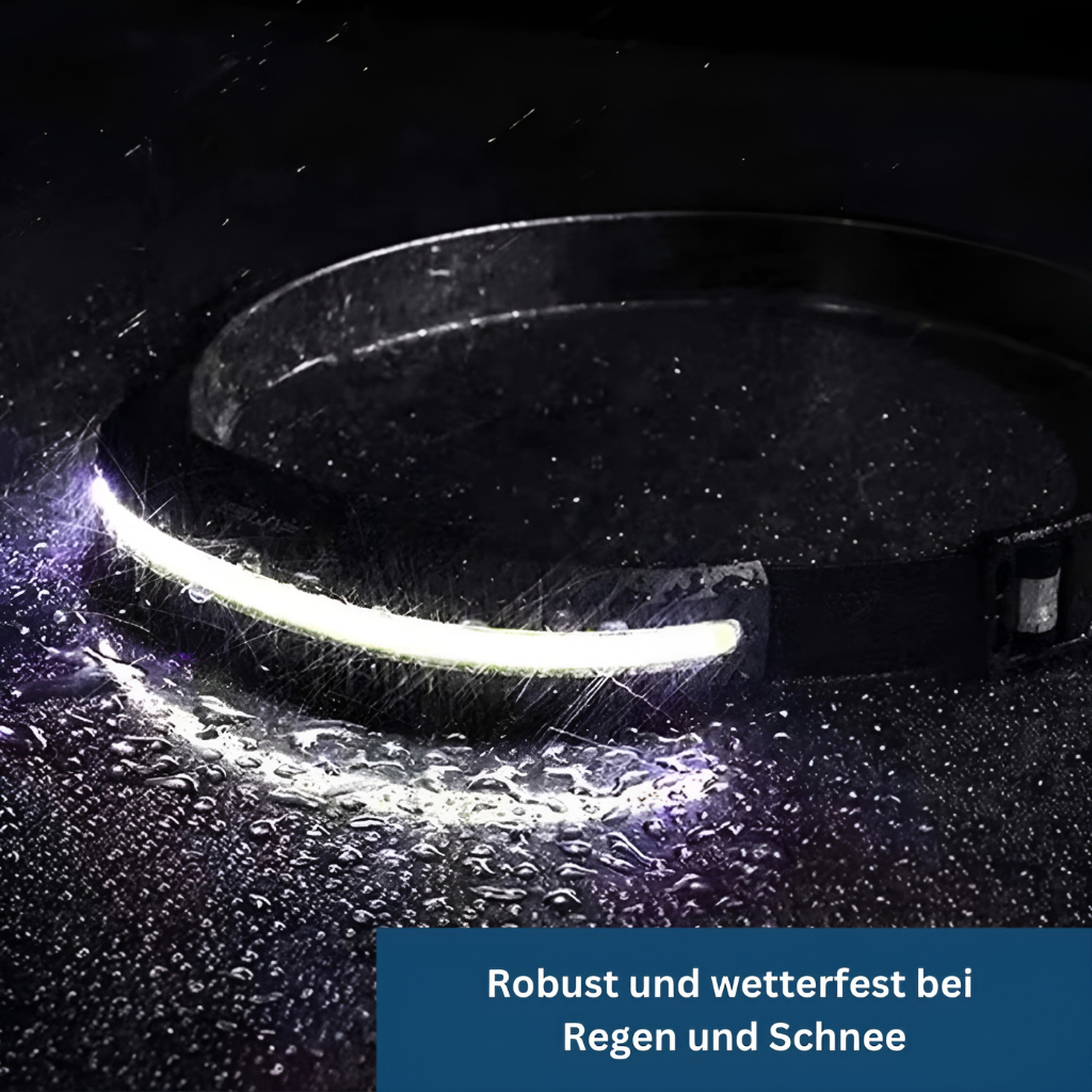 Die Stirnlampe Pro ist für alle Wetterbedingungen gemacht.