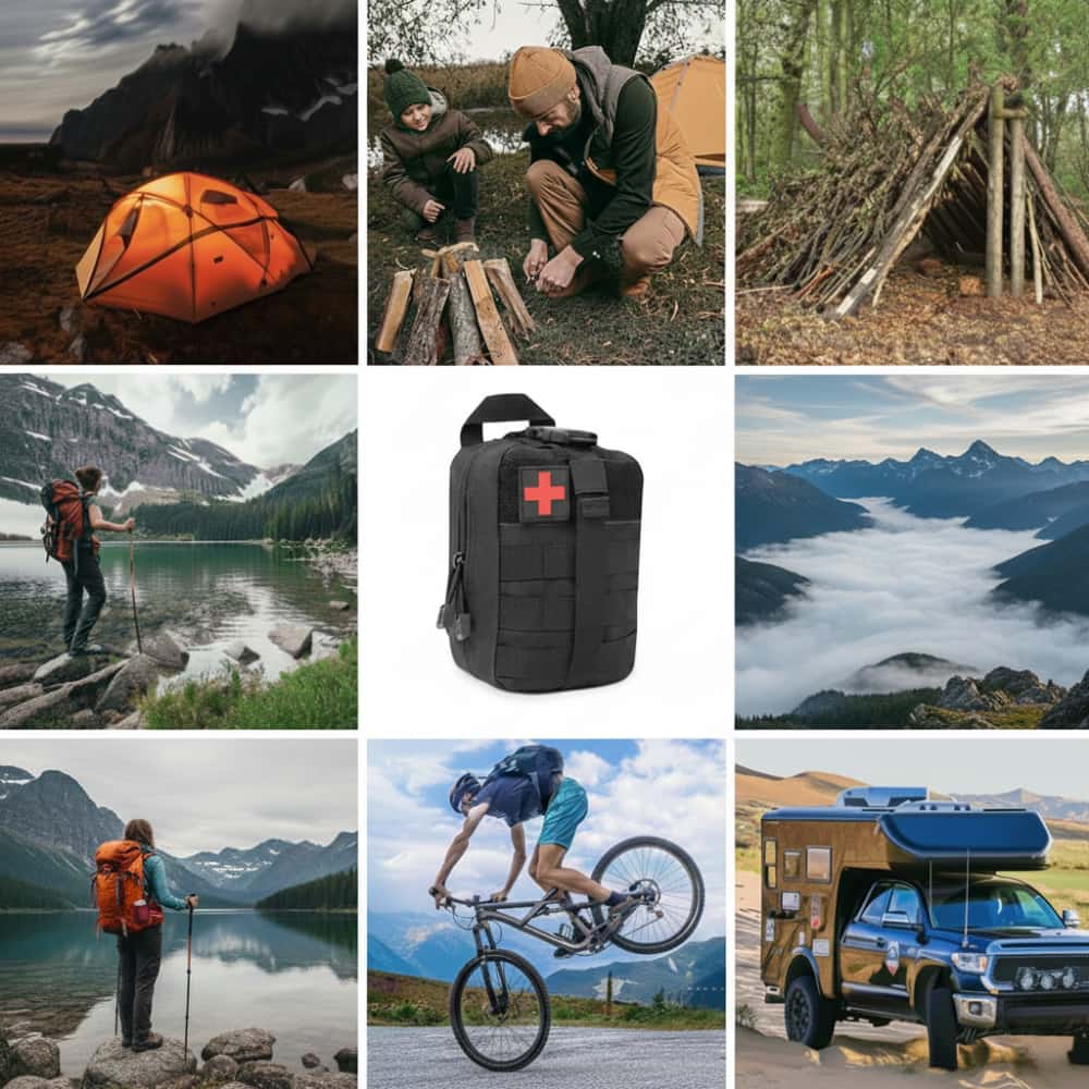 Das Kit ist ideal für Outdoor Abenteuer, Wanderungen, Camping, Survival-Training und Notfallsituationen.