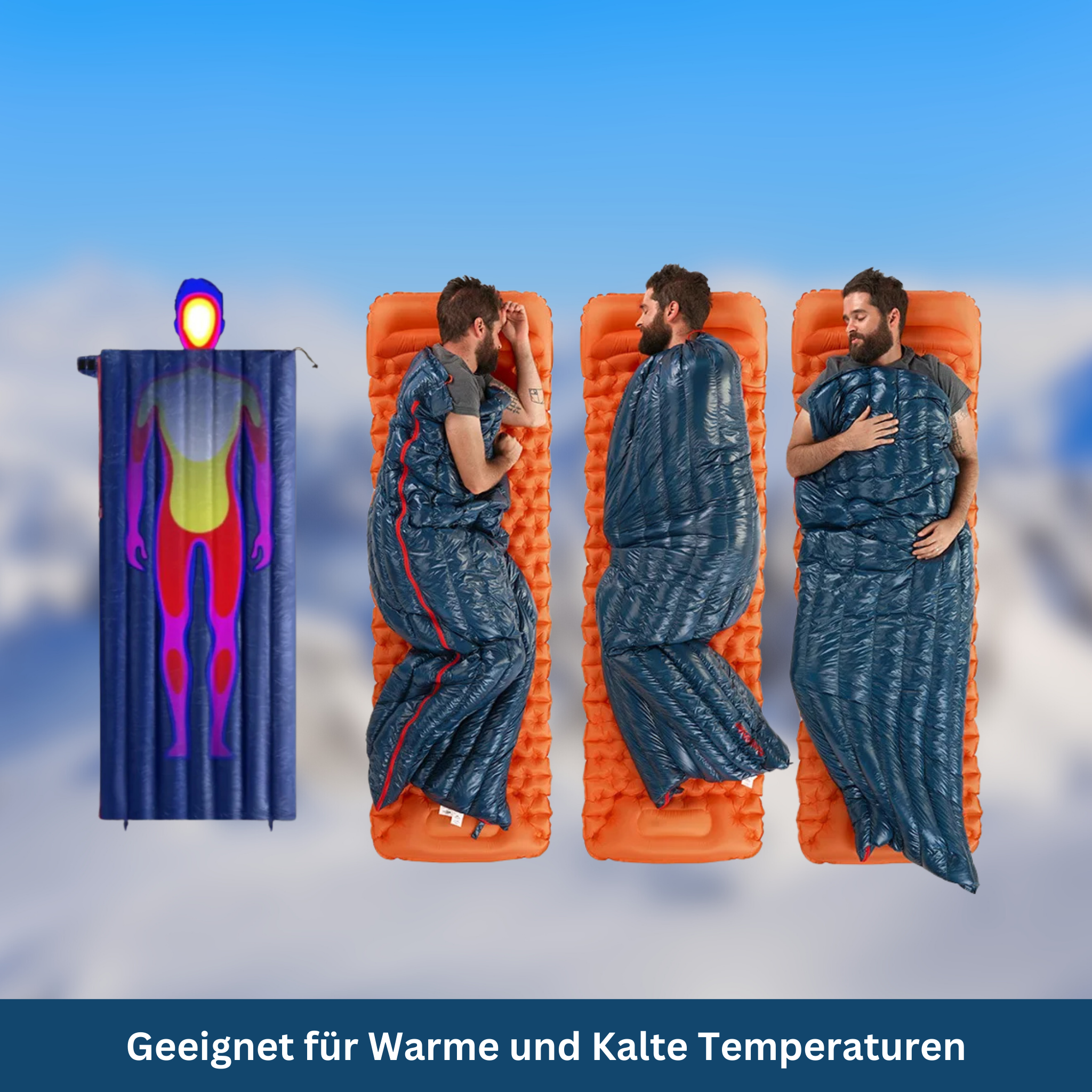 Egal ob Wintercamping oder Sommernächte in den Bergen – der ThermoComfort Schlafsack ist dein zuverlässiger Begleiter.