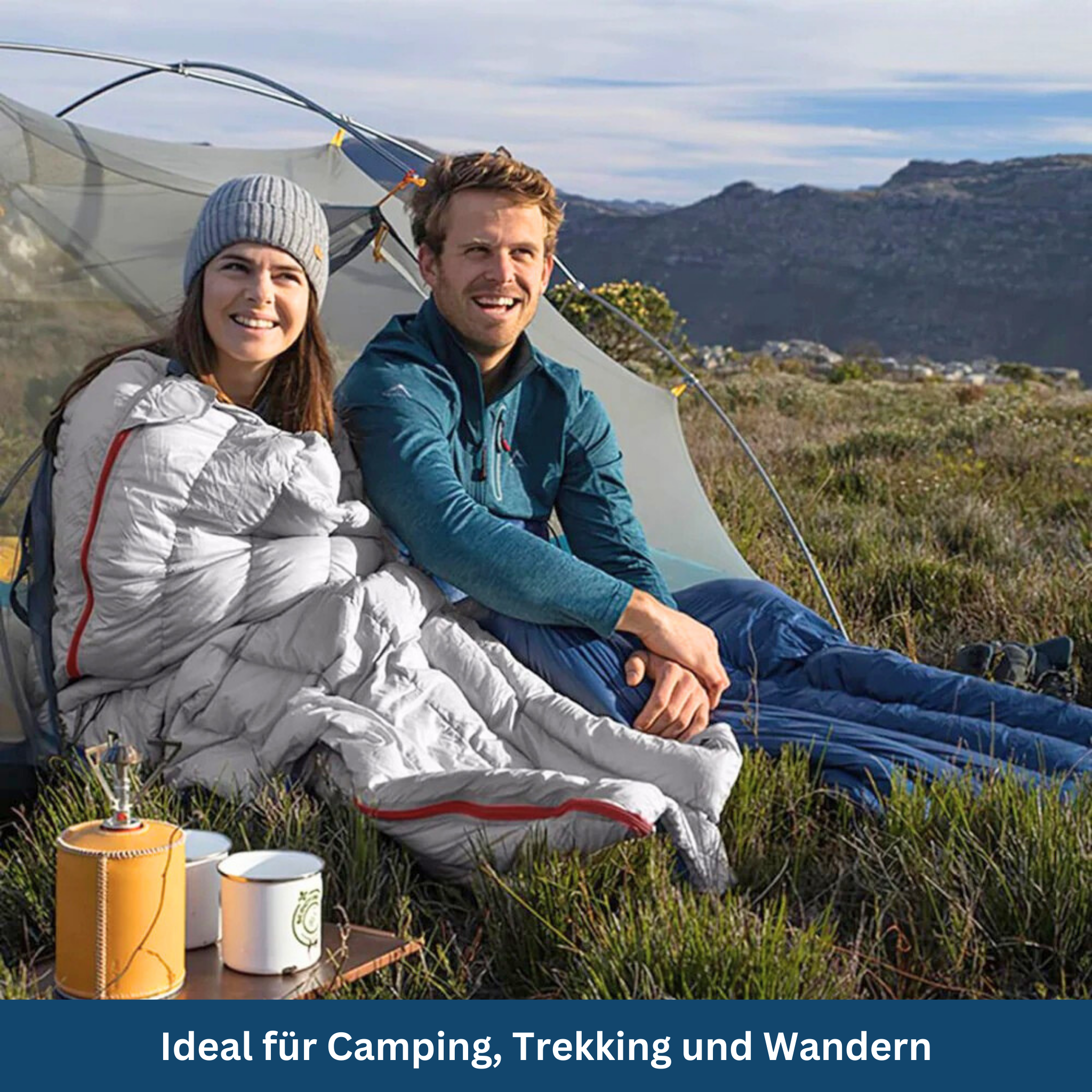 Ja, dank des praktischen Reißverschlusssystems kannst du zwei Schlafsäcke miteinander verbinden und so eine größere Liegefläche schaffen – perfekt für Paare oder Familien.