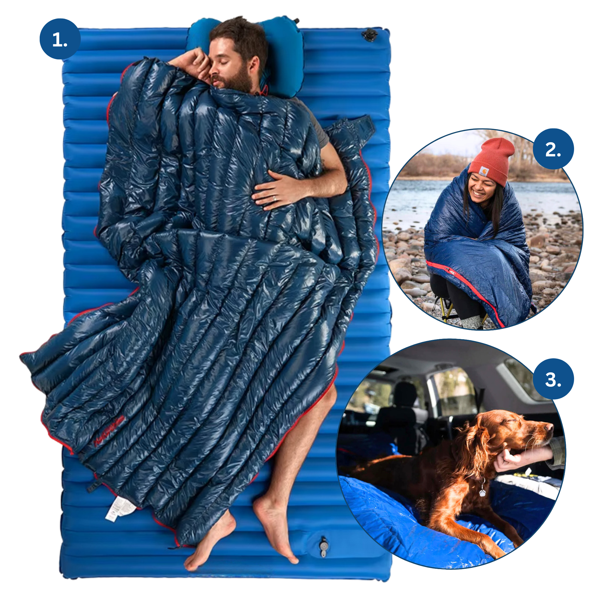 Dank des langen Reißverschlusses kannst du den Schlafsack auch als Decke verwenden oder ihn an kühlen Morgenstunden als wärmenden Umhang tragen.