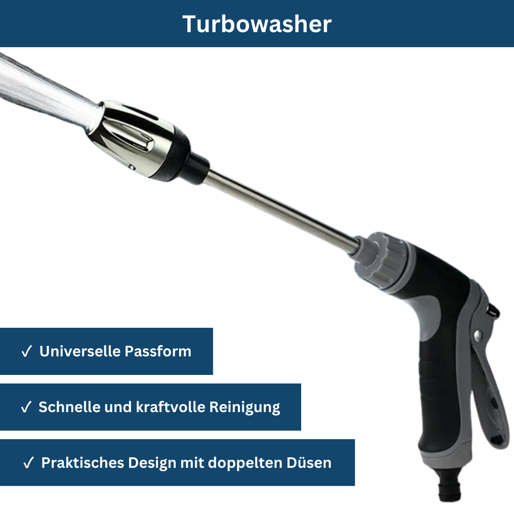 Dank seiner universellen Passform und dem praktischen Design mit doppelten Düsen, ermöglicht der Turbowasher eine schnelle und kraftvolle Reinigung.