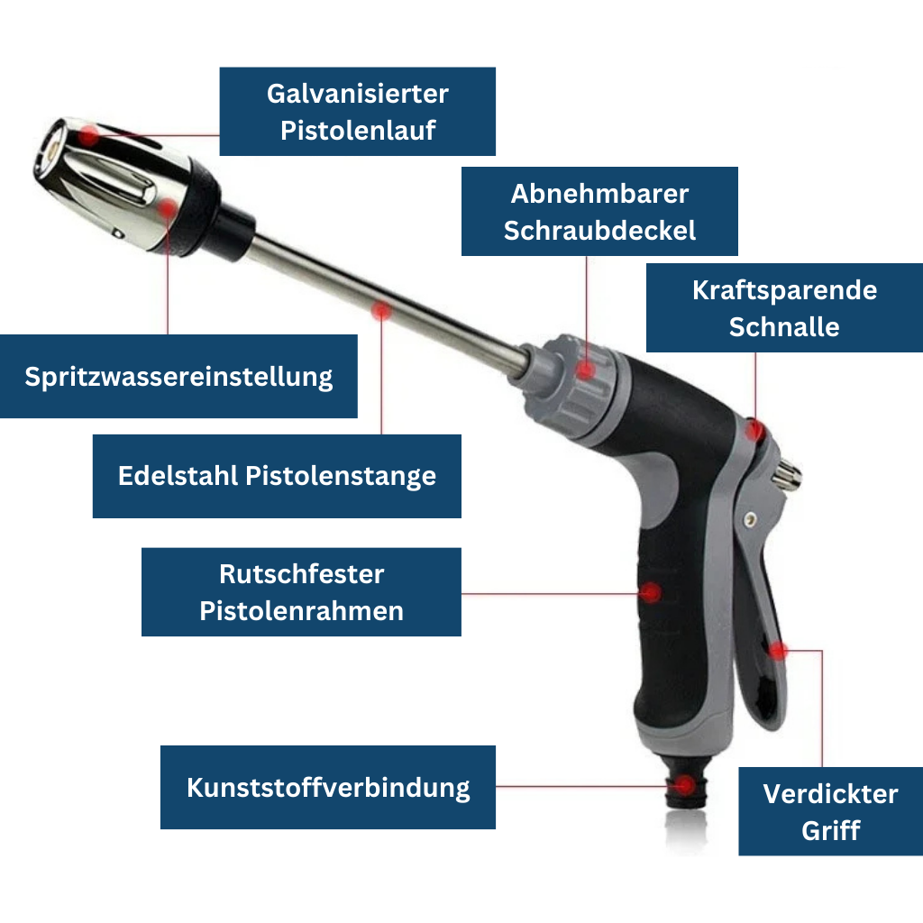 Mit seiner präzisen 360°-Drehregulierung und der einfachen Anpassung des Wasserdrucks bietet er die ideale Lösung für jedes Reinigungsprojekt, sei es für harte Oberflächen oder die sanfte Bewässerung deines Gartens.