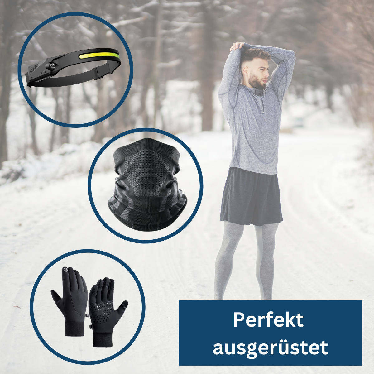 Unser VIP Winter-Bundle besteht aus folgenden Produkten: Die NaturVibes Stirnlampe - Das Original, das NaturVibes Premium Halstuch - Unisex und die NaturVibes ThermoMax Handschuhe