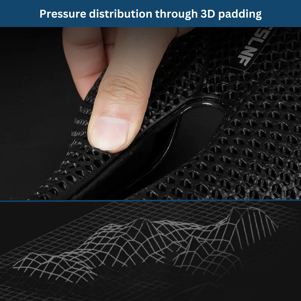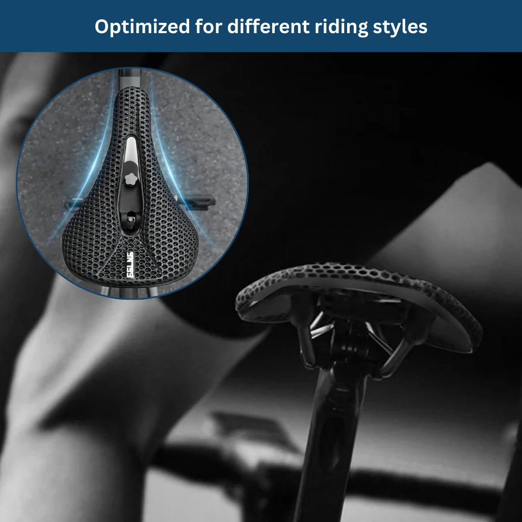 The saddle features a unique 3D-printed padding that ensures optimal pressure distribution.