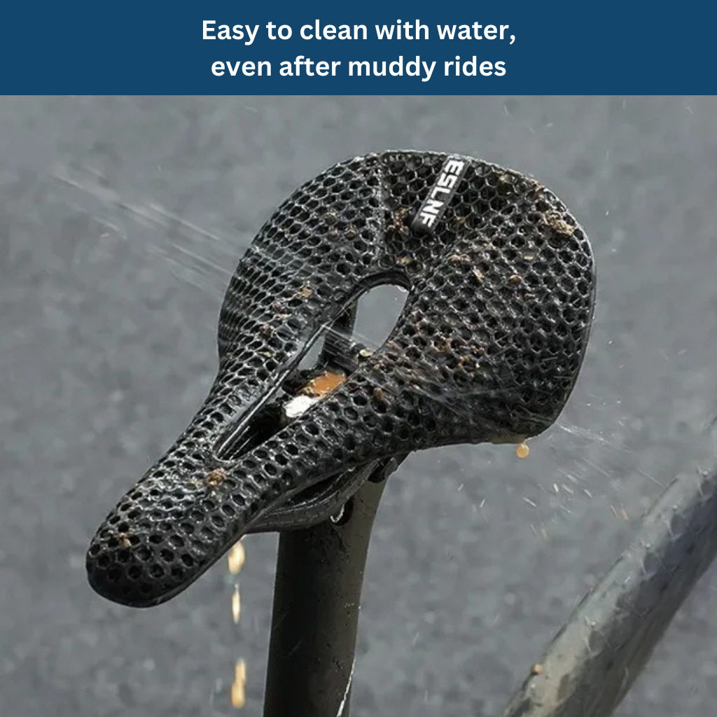 The unique 3D-printed padding of the Carbon Bike Saddle not only offers outstanding comfort but also ensures optimal pressure distribution.