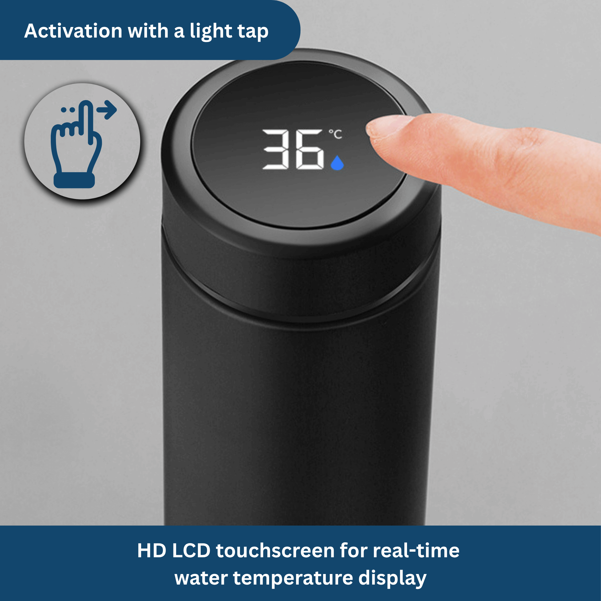 The thermos features an HD LCD touchscreen that shows the real-time temperature of your drink.