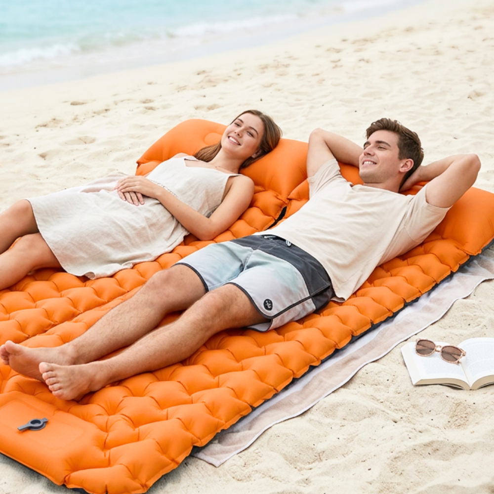 If you're traveling as a pair, two pads can be connected seamlessly using side buttons to create a comfortable double bed.