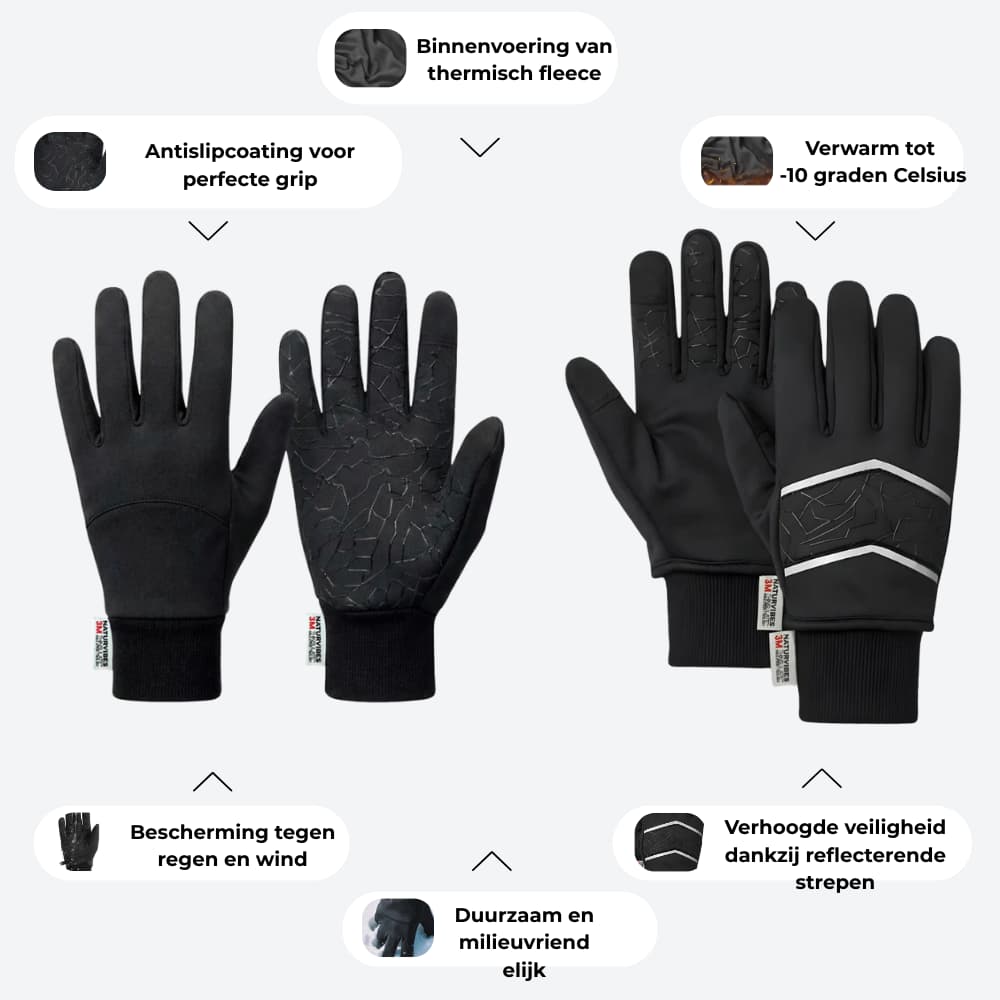 De ThermoPolar-handschoenen houden je handen warm tot -10 °C — ideaal voor koude winterdagen.
