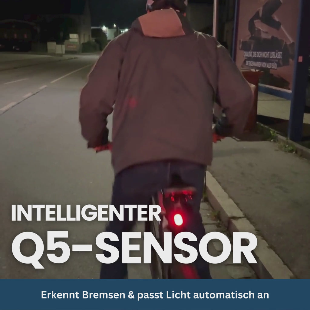 De uiterst intelligente Q5-sensor detecteert direct wanneer u remt tijdens het fietsen en activeert direct het remlicht van de Smartlight.