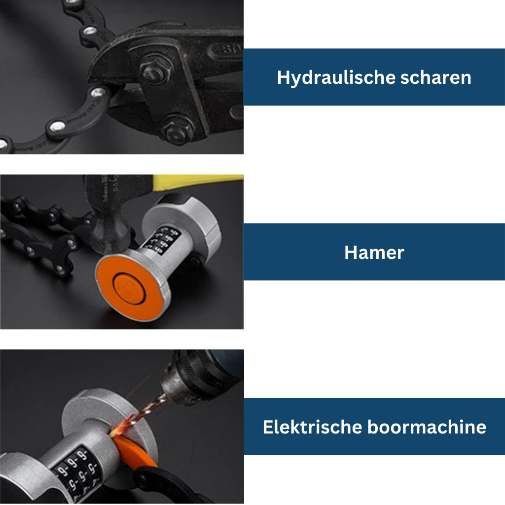 Het slot is gemaakt van robuust 45Cr-staal en biedt een hoge mate van veiligheid dankzij een viercijferige wachtwoordcombinatie. Het is bestand tegen inbraakpogingen en biedt extra bescherming door de PP-coating.