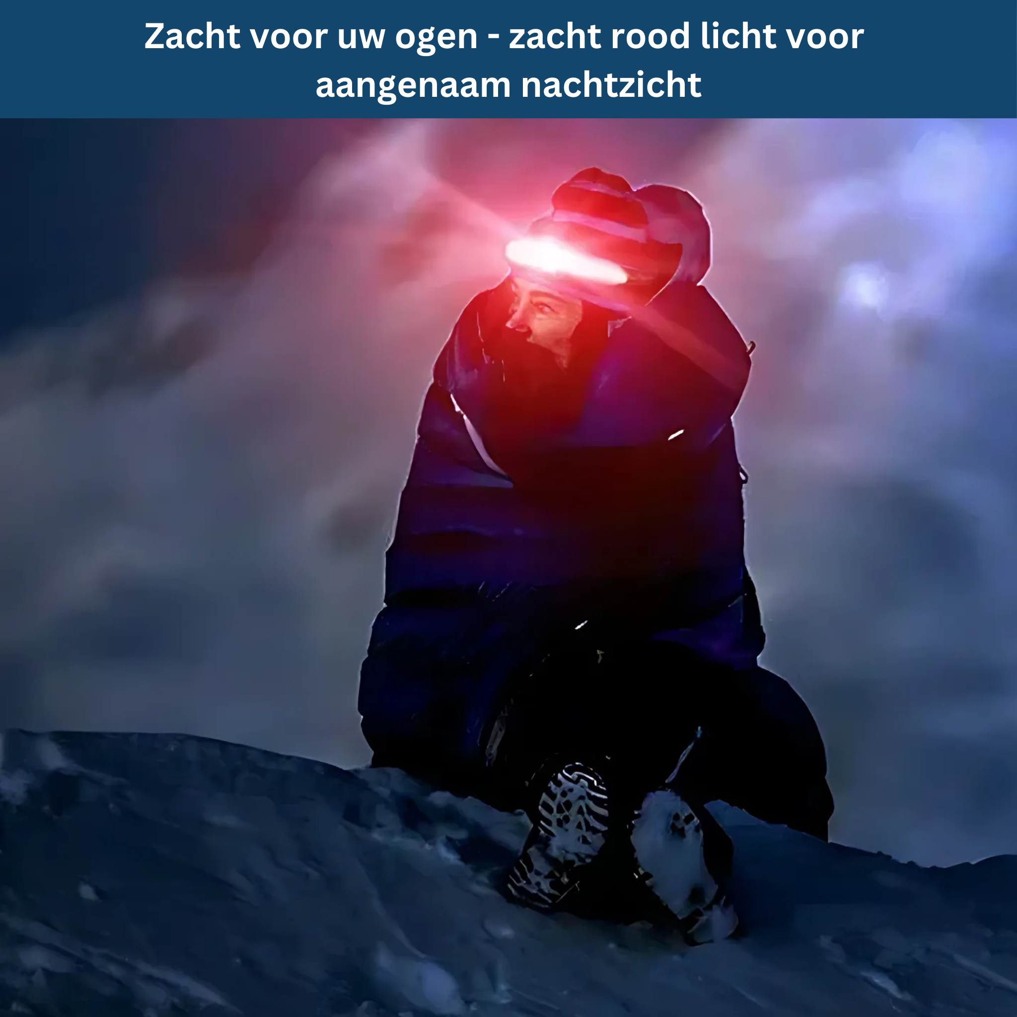 De inschakelbare rode lichtfunctie beschermt uw ogen in het donker en voorkomt dat insecten worden aangetrokken - ideaal voor kamperen, vissen of 's nachts.