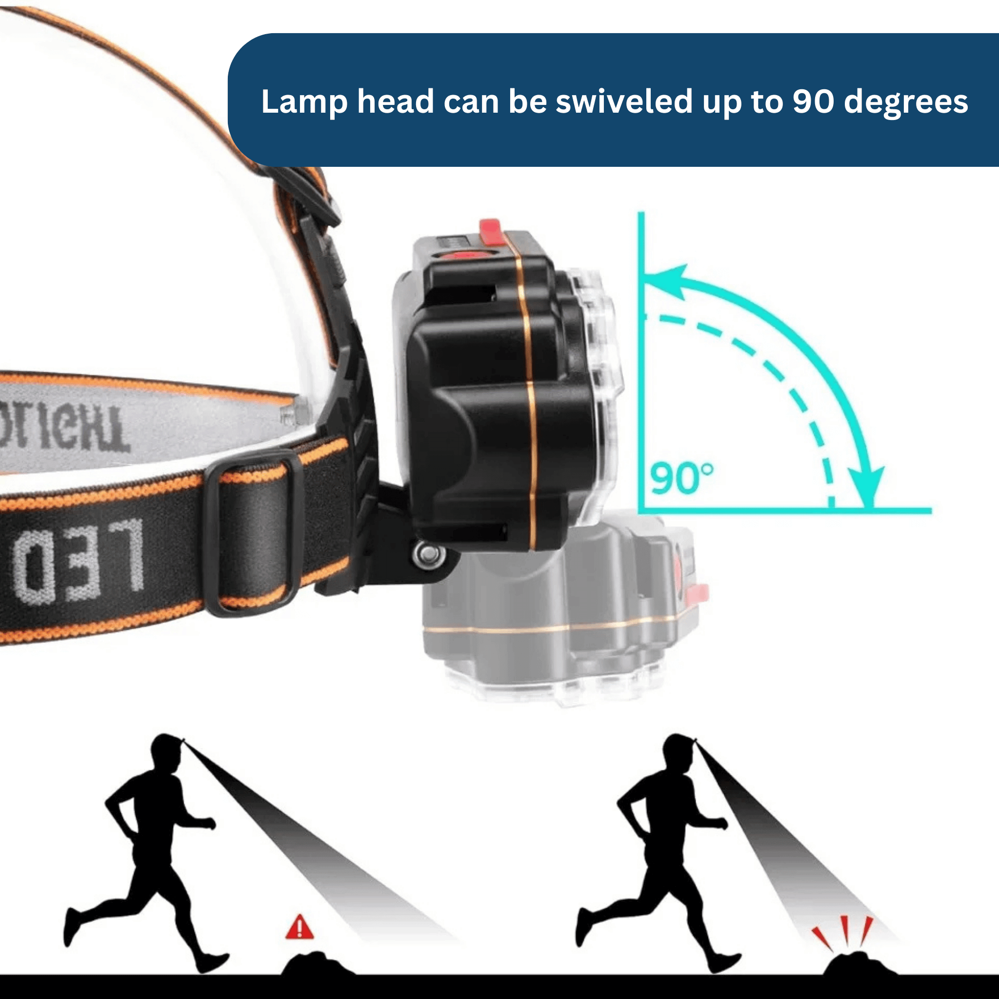 De lampkop kan tot 90 graden worden gekanteld, zodat je de lichtstraal nauwkeurig kunt richten.