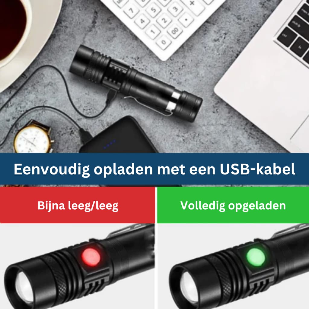 Het mooie aan onze NaturVibes KOMPAKT-S16 zaklamp is dat je de batterij zelfs kunt opladen als deze leeg is!
