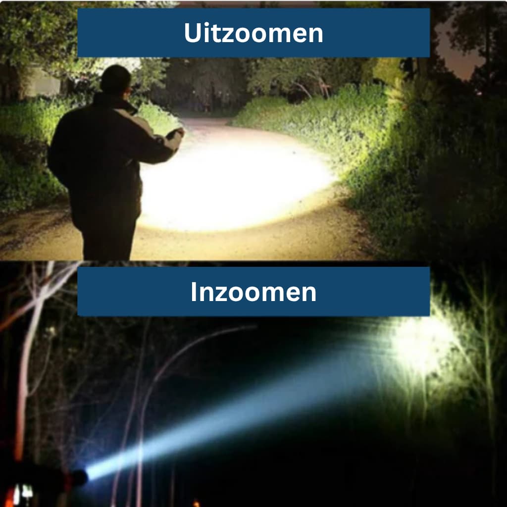 Met de zoomfunctie kunt u het perfecte licht voor uw situatie instellen. Om dit te doen, hoeft u alleen maar de lampkop naar voren of naar achteren te bewegen. De focus verandert dan.
