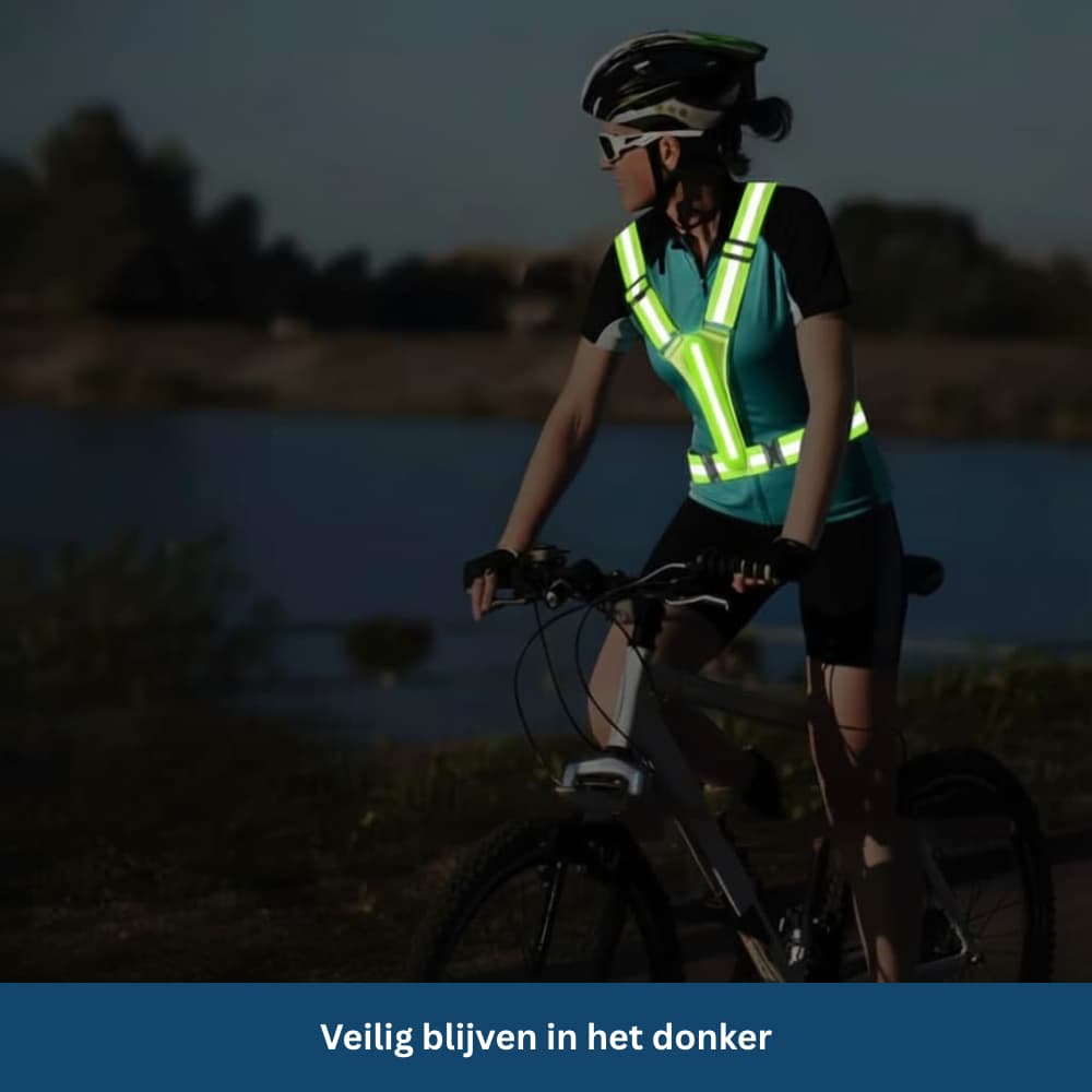 Zo blijf je goed zichtbaar en veilig, zelfs op onverlichte wegen of paden.