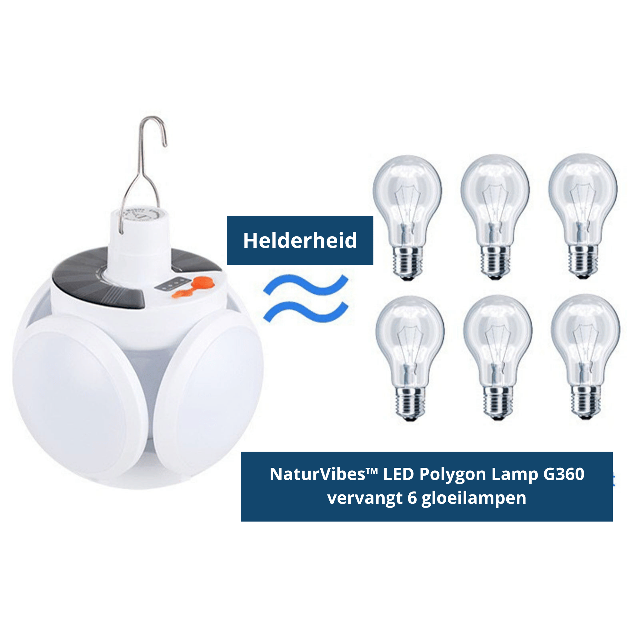 Met onze NaturVibes LED Polygon Lamp G360 beschikt u over een ultraheldere en zelfvoorzienende lichtbron!
