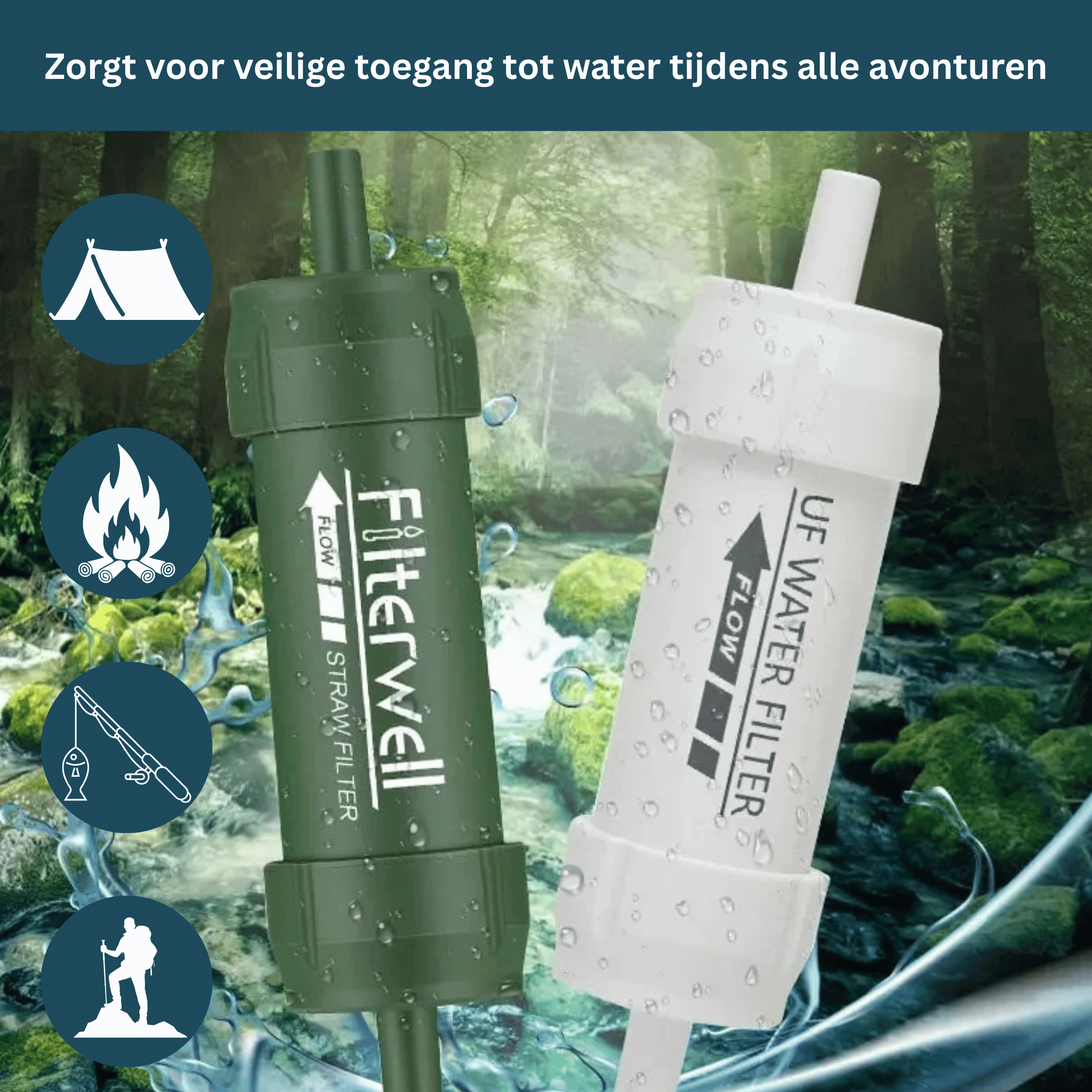Hij is ideaal voor kamperen, wandelen, vissen, reizen, outdoor-avonturen en ook voor noodgevallen – overal waar je betrouwbare toegang tot schoon water nodig hebt.