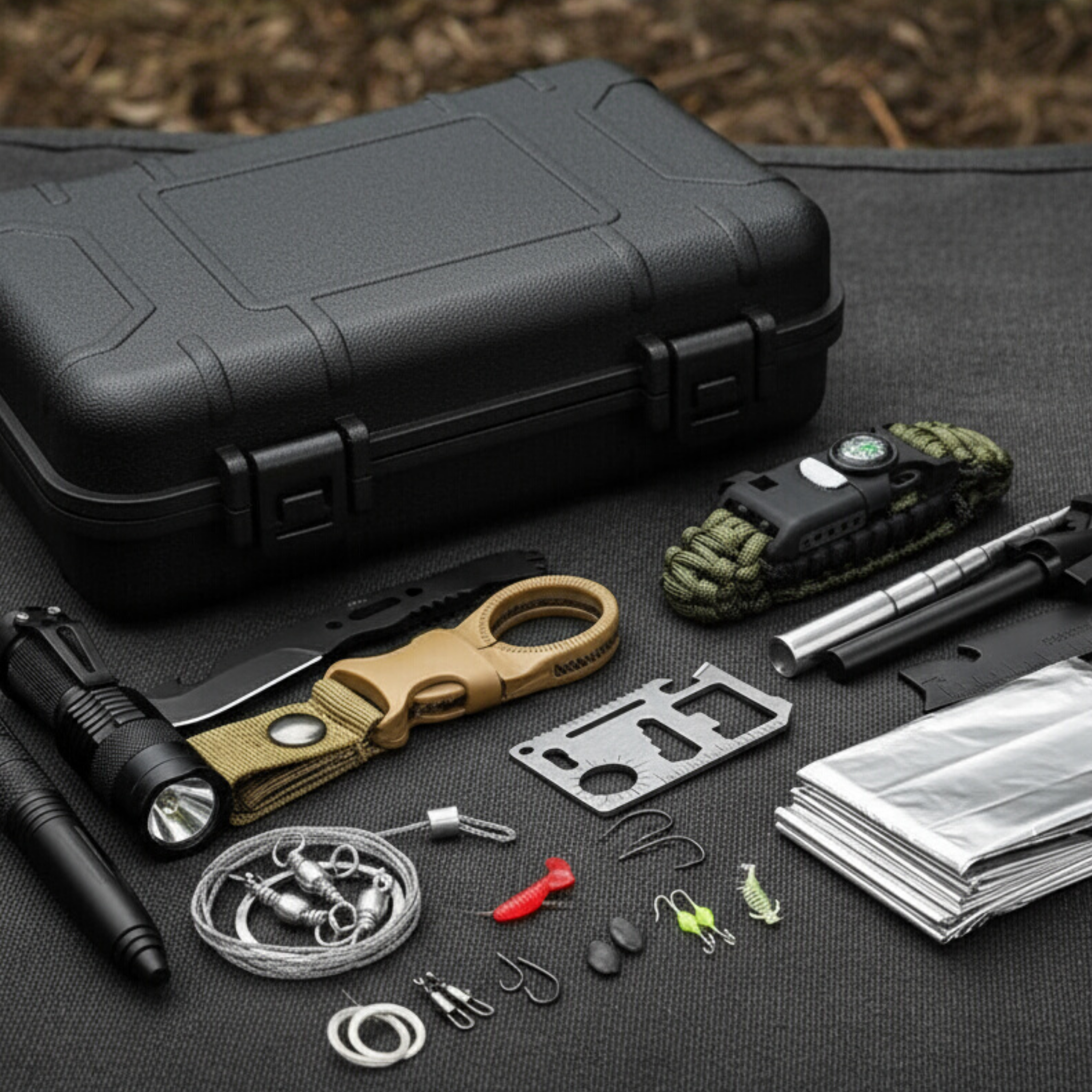 Elk onderdeel van de survival kit is robuust, weerbestendig en ontworpen voor echte outdoor omstandigheden.