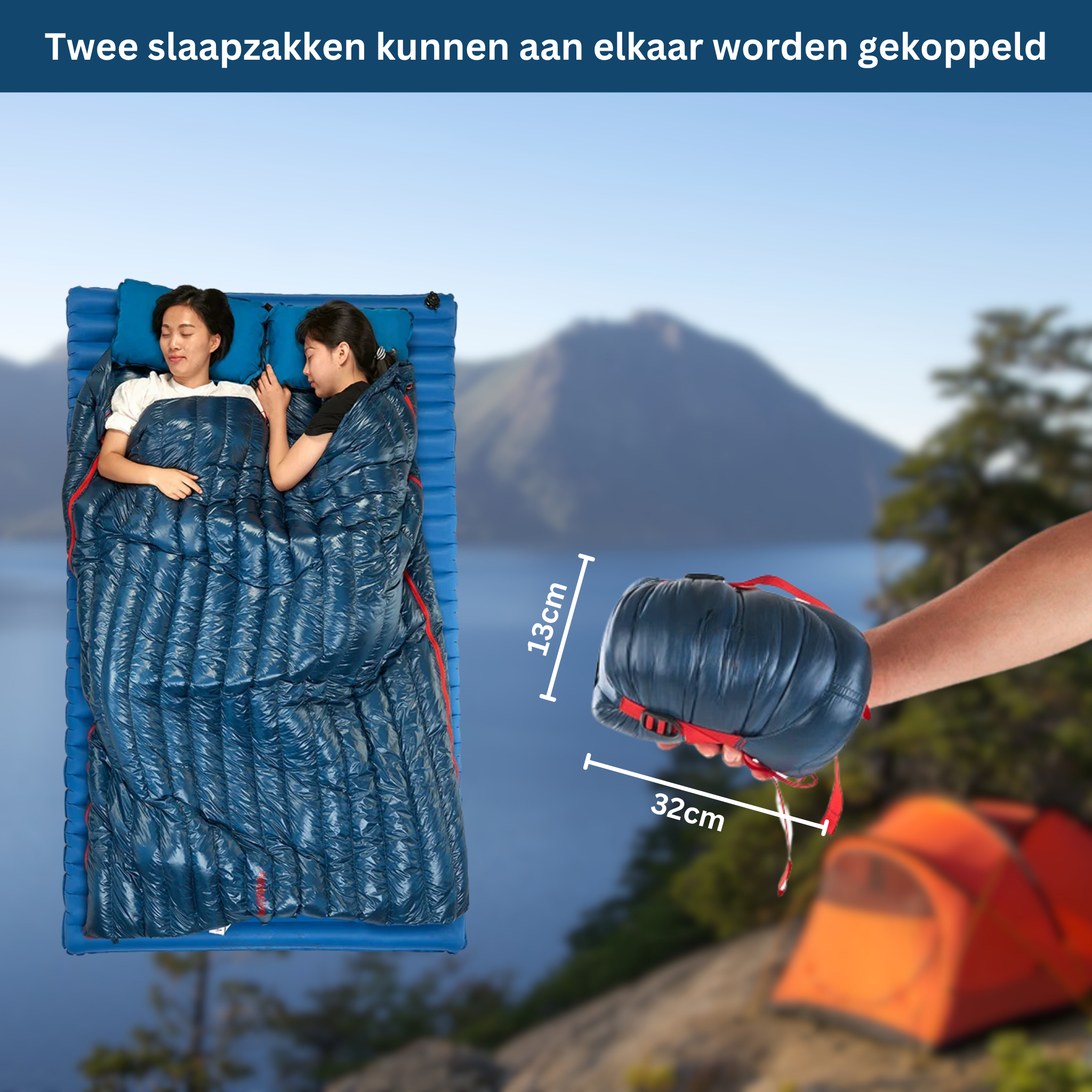 U kunt ook twee slaapzakken aan elkaar koppelen om een extra groot slaapoppervlak te creëren.