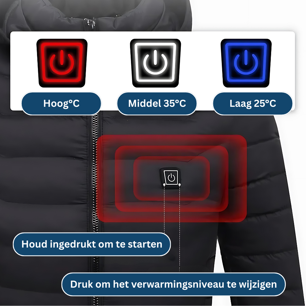 De verwarmingselementen zijn veilig in het vest geïntegreerd en geïsoleerd door een beschermende laag. Gebruik het vest volgens de gebruiksaanwijzing.