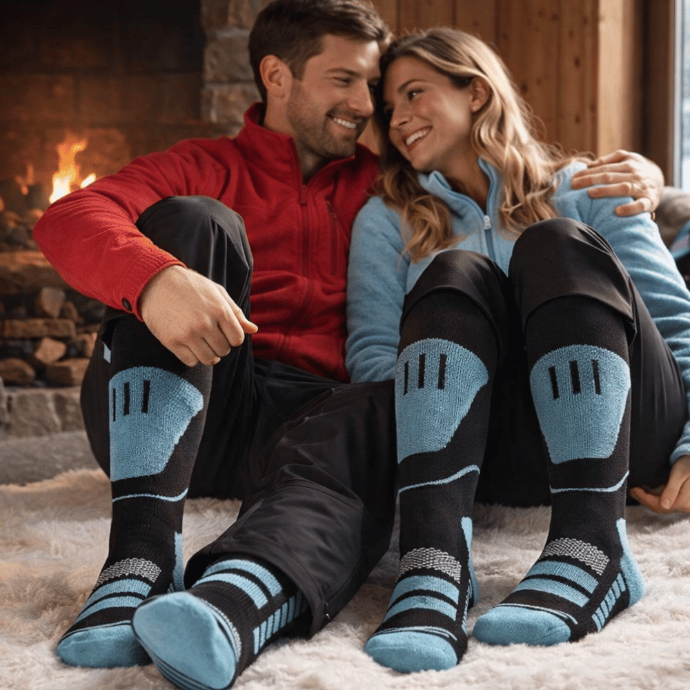 Deze thermische skisokken houden je voeten aangenaam warm en zorgen ervoor dat je je comfortabel voelt, zelfs na uren in de sneeuw – zowel in skischoenen als daarbuiten.
