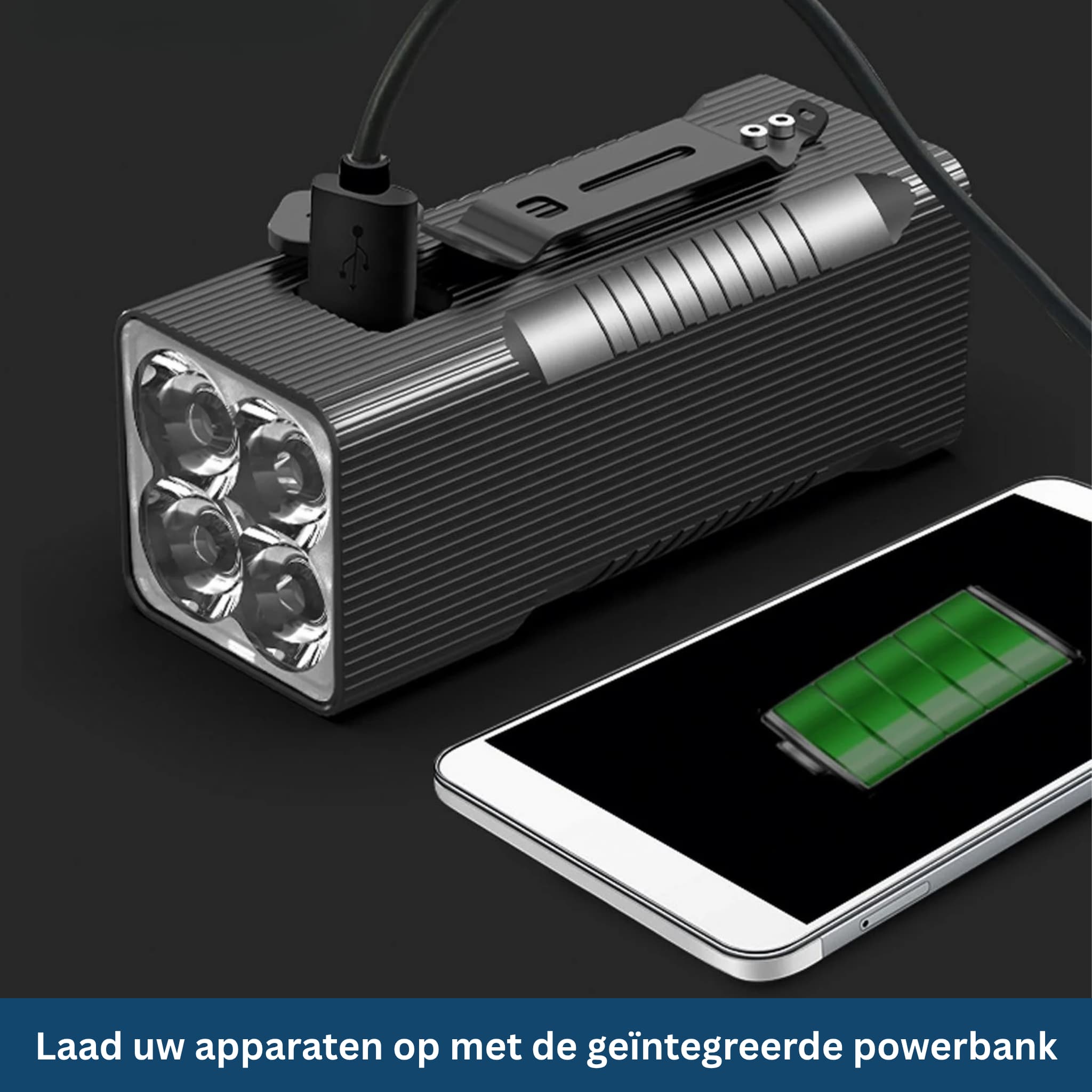 Het ultra-koplamp maakt gebruik van krachtige P90x4-leds die voor een uitzonderlijke helderheid zorgen.