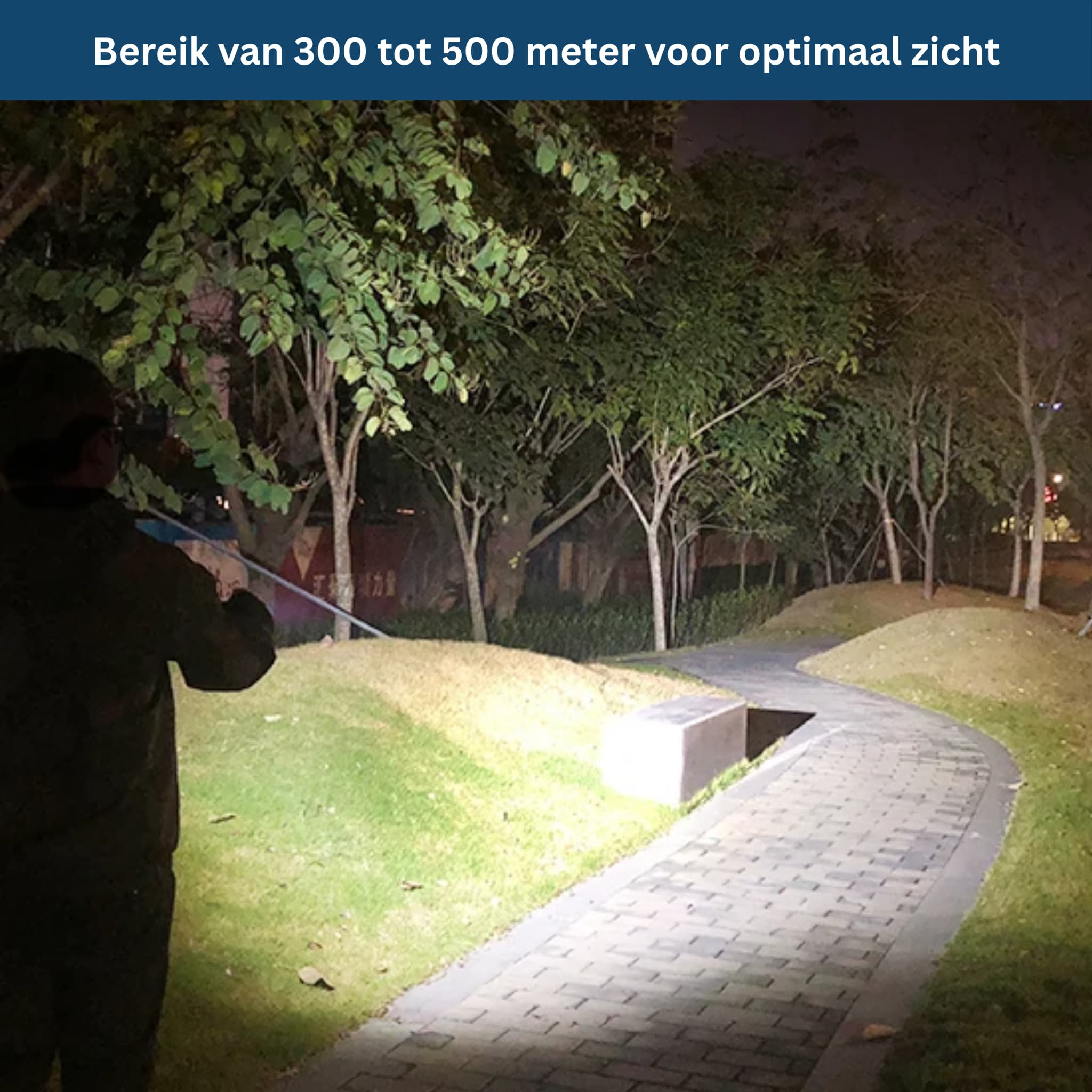 Het biedt een indrukwekkende helderheid van maximaal 10.000 lumen en een bereik van maximaal 500 meter.