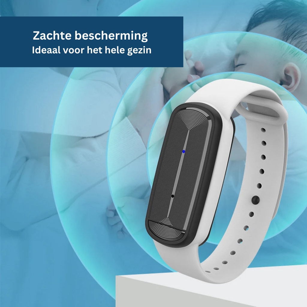 De armband maakt gebruik van innovatieve ultrasone technologie die hoogfrequente geluidsgolven genereert.