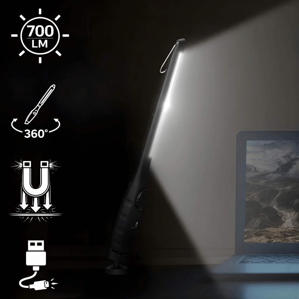 Een belangrijk voordeel van de WorkBeamPro is de onbeperkte bewegingsvrijheid tijdens gebruik. De geïntegreerde magnetische voet hecht stevig aan metalen oppervlakken, terwijl de extra draaibare haak extra bevestigingsmogelijkheden biedt.